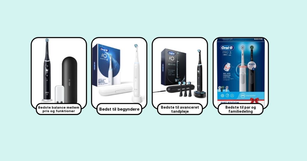 Uanset om du er på udkig efter en tandbørste med avanceret teknologi, lang batteritid eller et godt budgetvalg, har jeg samlet en alsidig liste, som kan hjælpe dig med at finde netop den, der passer til dine behov og ønsker.