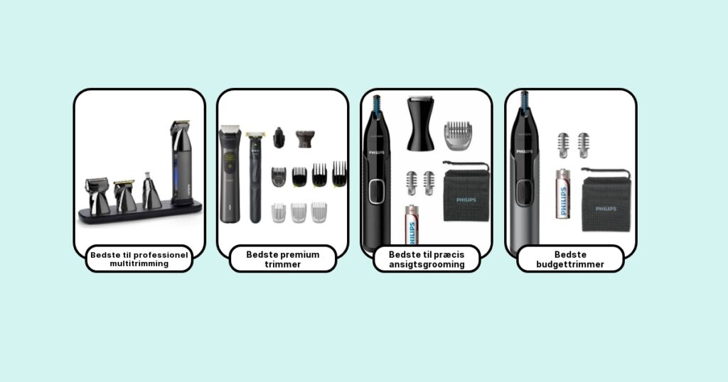 Markedet bugner af modeller, men der er langt mellem de rigtig gode. Mærker som Panasonic, Remington, BaByliss og Dovo har gennemtestede modeller, som især skiller sig ud på kvaliteten af skær, batterilevetid og ergonomi. GN30 fra Panasonic er et perfekt eksempel på en trimmer, der forener multifunktionalitet med præcision, og kan både bruges til næsehår, ørehår og endda til at forme bryn eller detaljer i skægget.