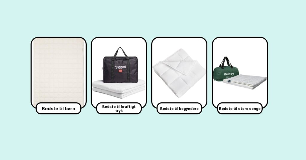 Efter mange års tests og utallige samtaler med brugere og producenter har jeg udvalgt syv tyngdedyner, som virkelig skiller sig ud på det danske marked i 2024. Udvalget dækker forskellige behov og prisklasser, så alle kan finde deres favorit. Her er min personlige top 7: