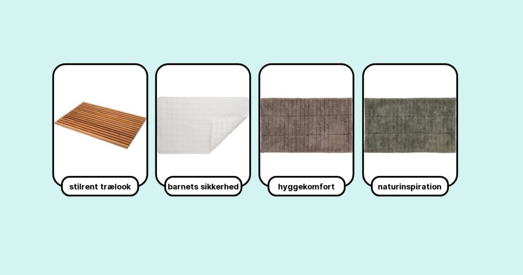 Er bæredygtighed vigtig for dig, så findes der flere bademåtter lavet af økologisk bomuld eller naturmaterialer som bambus. De er et hit i husstande med allergikere eller små børn. Undgå måtter med stærk kemi og vælg mærker, der er OEKO-TEX certificeret. Jeg oplever personligt, at de miljøvenlige varianter let matcher komforten, og så er de rare at have under fødderne med god samvittighed.