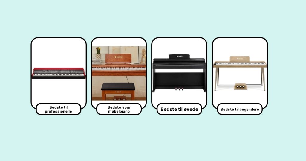 Ud over Donner DDP-80, er der flere modeller, jeg varmt kan anbefale. Yamaha P-125 imponerer med sin klassiske klaverlyd og intuitive betjening. Casio PX-S1000 er ultraslankt, men kraftfuldt, og passer perfekt til dig med begrænset plads. Roland FP-30X byder på noget af det bedste inden for digital klaverteknologi med dyb bas og realism i toucher. Kawai ES110, Nord Piano 5 og Korg B2N runder listen af; alle giver noget helt særligt til forskellige spilleres behov. Jeg anbefaler at prøve dem selv – du vil straks mærke forskellen!