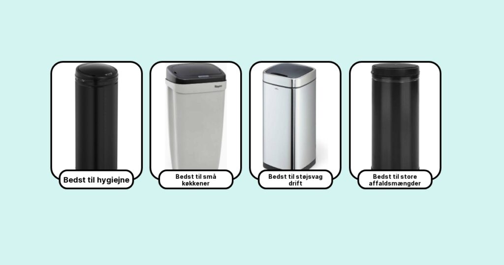 Efter at have testet og researchet adskillige sensor-skraldespande, har jeg udvalgt de 7 bedste på det danske marked: