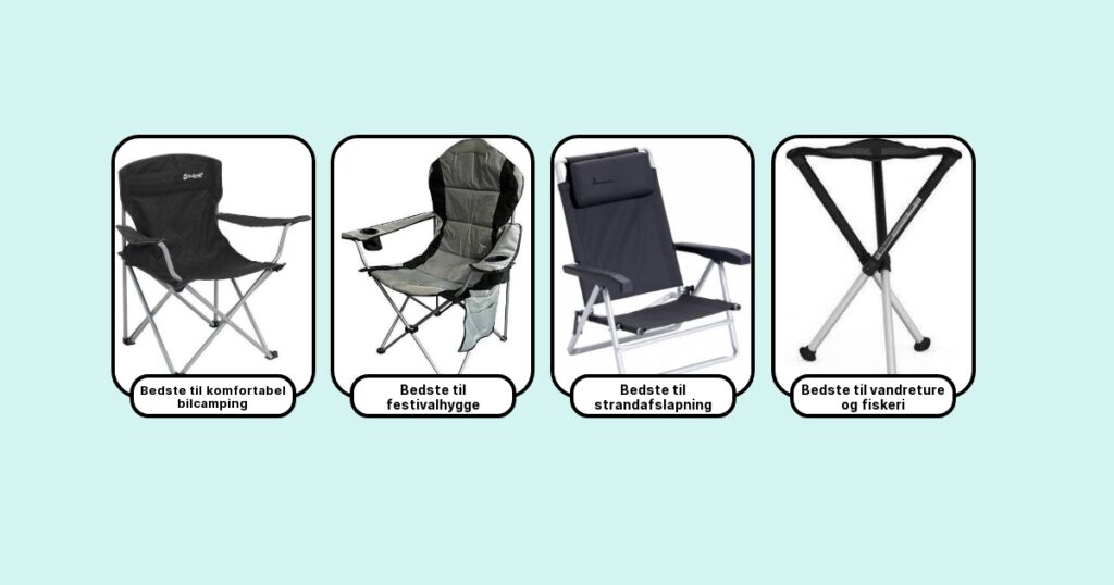 Sammenlign altid vægt, komfort, pakket størrelse og funktionalitet, så får du en stol, der matcher dine ture perfekt.