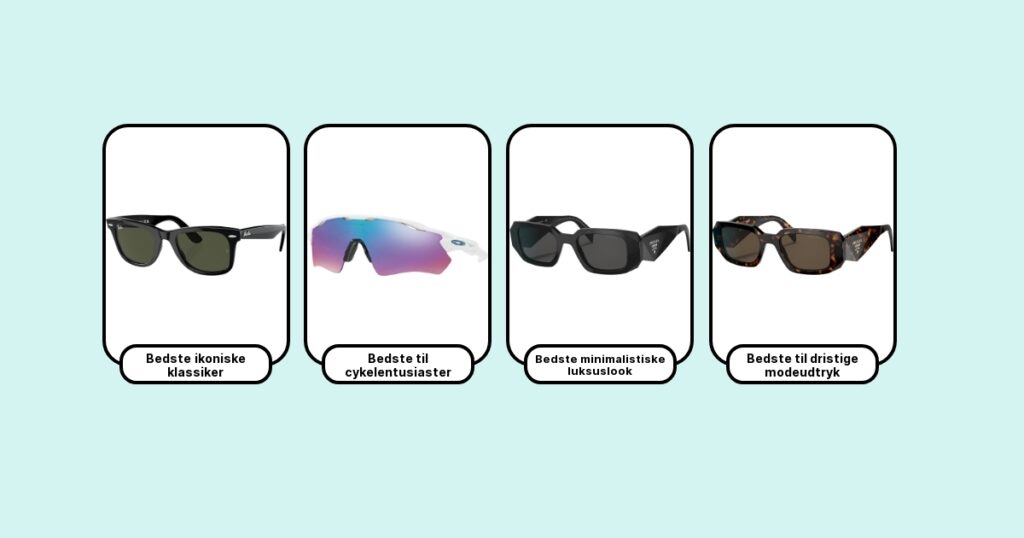 Efter mange års erfaring, både privat og professionelt, kommer her mine absolutte favoritter: Ray-Ban – for klassikerne, Oakley – til sport, Maui Jim – for tropisk klarhed, Persol – italiensk luksus, Polaroid – prisvenlig polarisering, Tom Ford – stil og elegance, og endelig Prada – eksklusivt og moderne design. Uanset om du vælger én af dem, eller går din egen vej, så sørg for at dine solbriller matcher både dine behov, din stil – og ikke mindst beskytter dine øjne optimalt.